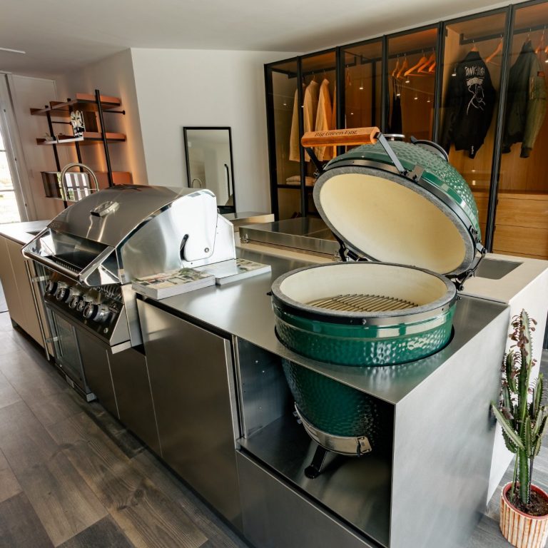Des cuisines extérieures robustes, idéales pour l'île, avec des matériaux résistant aux intempéries.